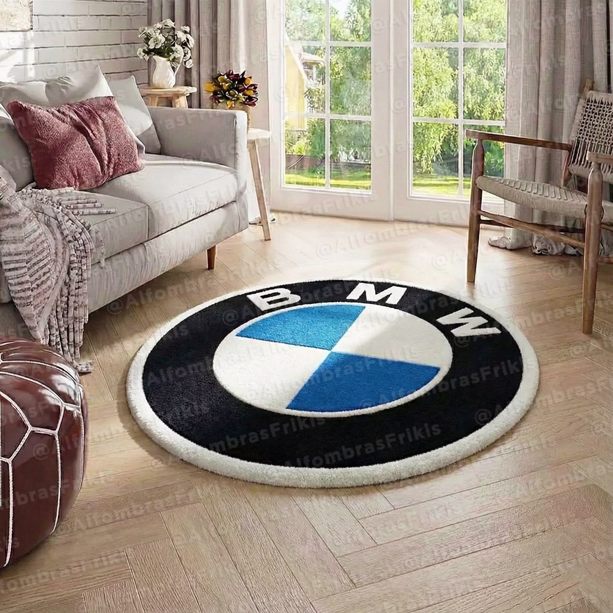 Eleve la estética de su espacio con nuestra alfombra artesanal de diseño inspirado en BMW. Perfecta para entusiastas del automovilismo, esta pieza decorativa combina funcionalidad y estilo, ofreciendo un toque distintivo a cualquier ambiente.