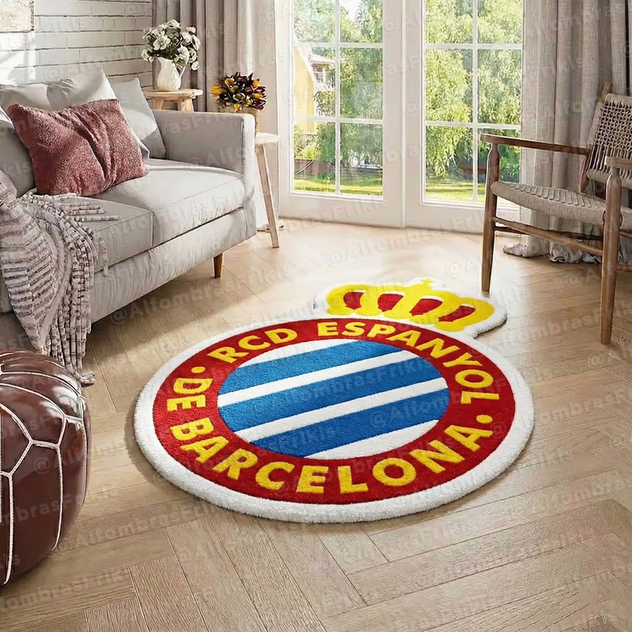 Alfombra del RCD Espanyol de Barcelona, con el escudo (puedes personalizarla con el nombre que tú elijas).